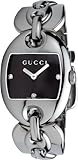 My BF bought me the this watch through Amazon. I love the look! it is bold, sassy,loud and classy. The diamonds are beautiful nice sizes. It looks more like a cuff bracelet. However, when I watched my hand today(this is my second day wearing it) I noticed stains and water vapor inside the watch. I thought it was 99meters water resistant. So much for that. THe watch is so beautiful tho. Maybe I just got the bad one. I have to return it, too bad.Get more detail about GUCCI Women's YA121303 121 Marina Chain Diamond Watch.